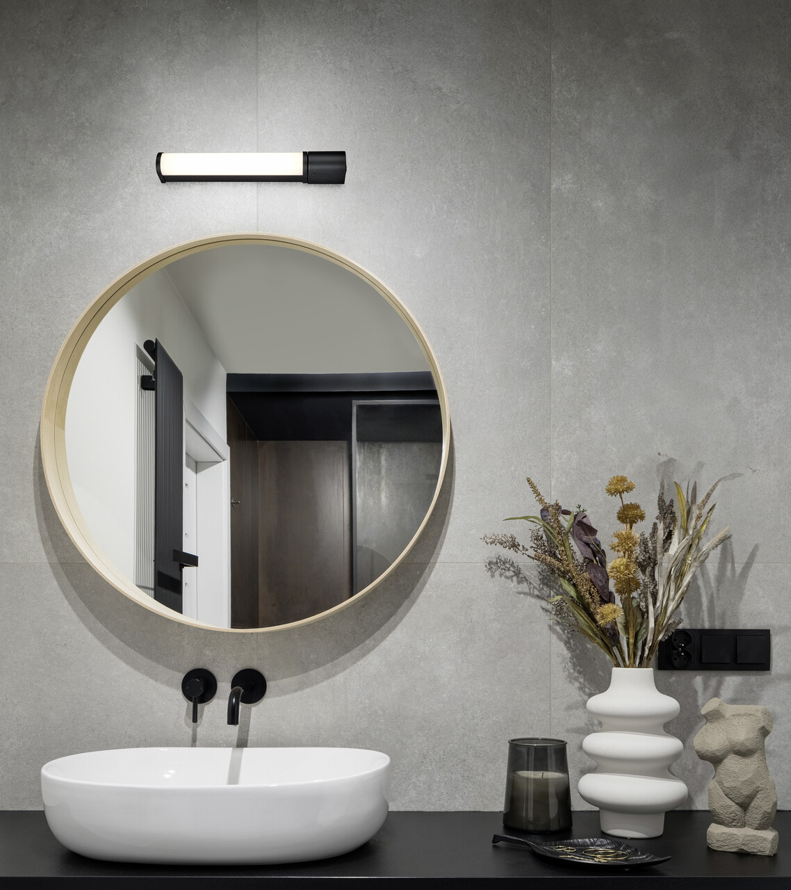Aplica de perete Nandini, TRIO, 10x6x17 cm, 10W, 1x E14, metal, negru mat/natur