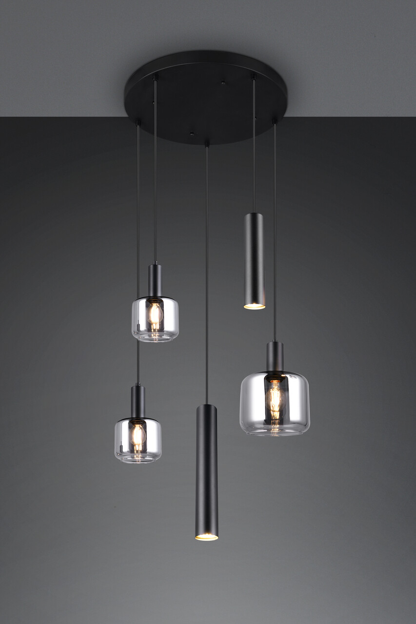 Lustra Mataro, TRIO, 40x150 cm, 10W / 10W, 1x E27 / 2x E14 / 2x GU10, metal, negru mat/argintiu