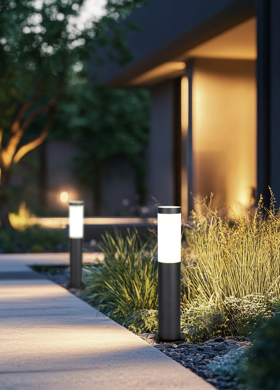 Set 2 taburete pentru gradina/terasa Baxter, 40x40x38 cm, otel/poliester, gri/negru