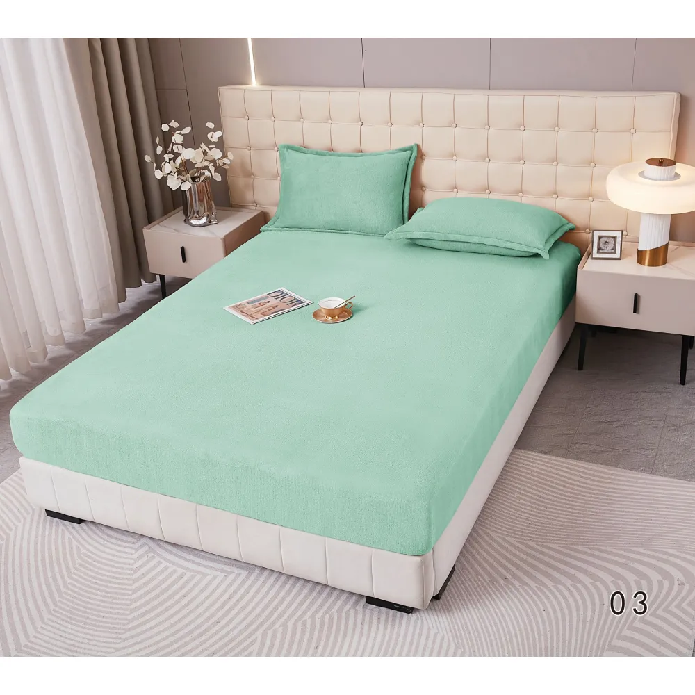 Husa de Pat Cocolino cu Elastic + 2 Fete de Perna pentru Pat Dublu, Verde Menta - DNA278