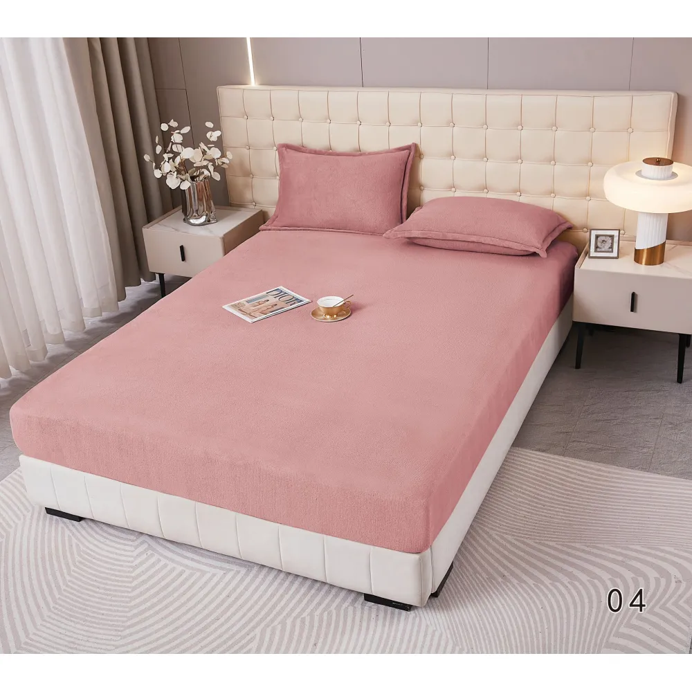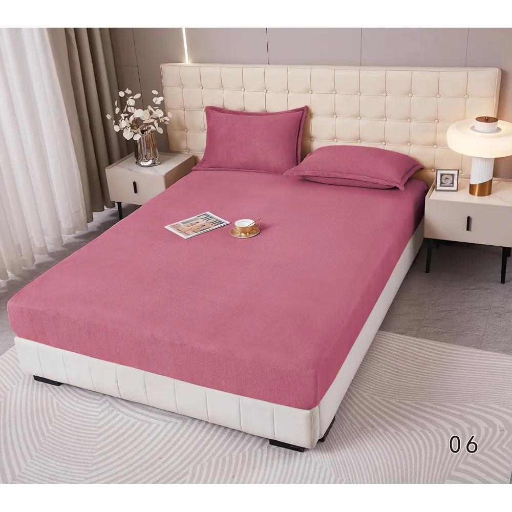 Husa de Pat Cocolino cu Elastic + 2 Fete de Perna pentru Pat Dublu, Roz Inchis Pudra - DNA280