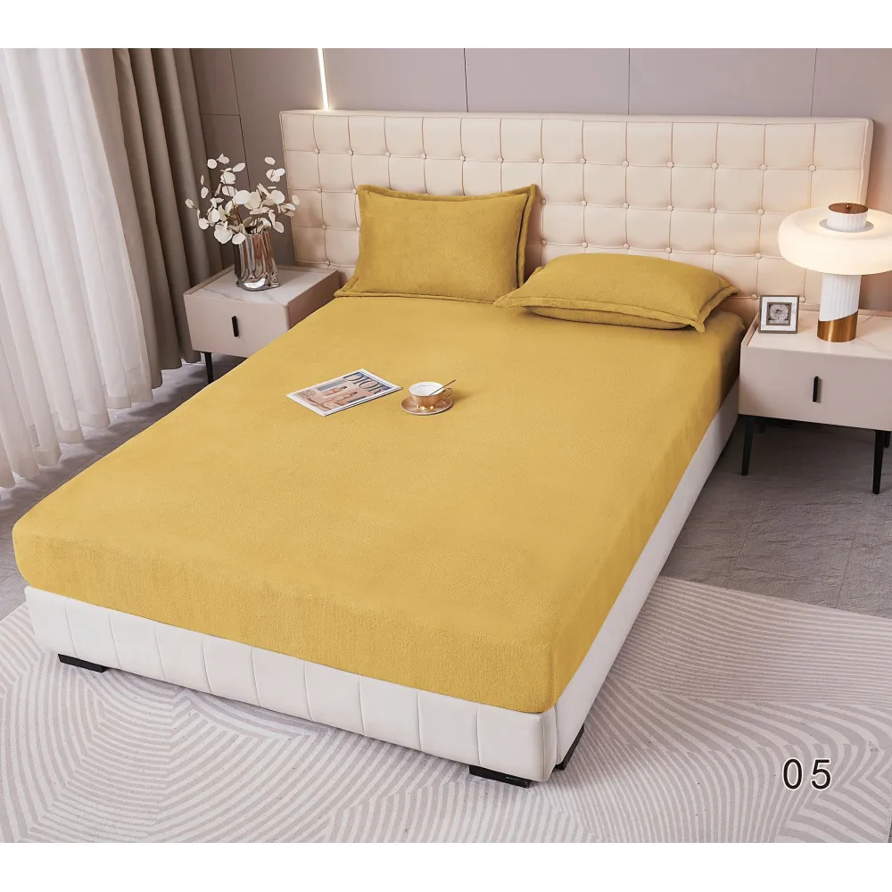 Husa de Pat Cocolino cu Elastic + 2 Fete de Perna pentru Pat Dublu, Galben Mustar - DNA281