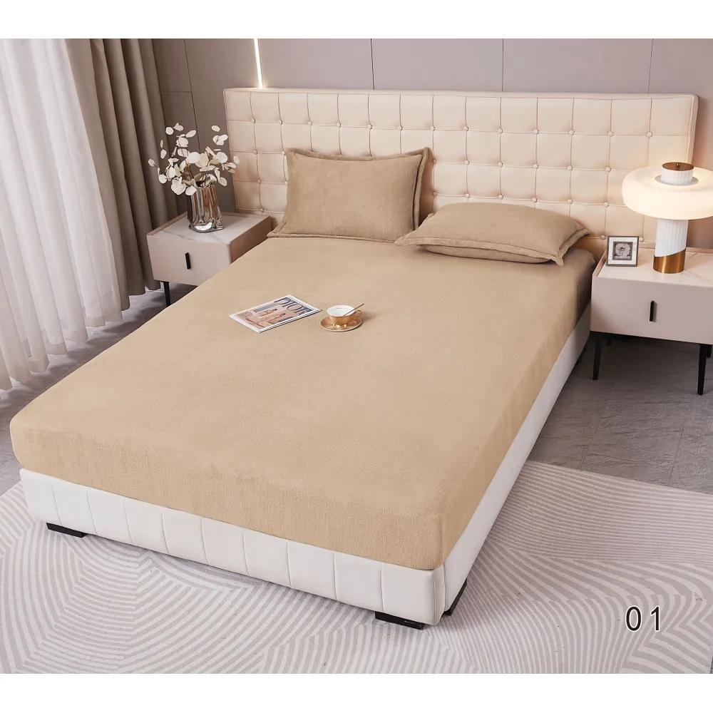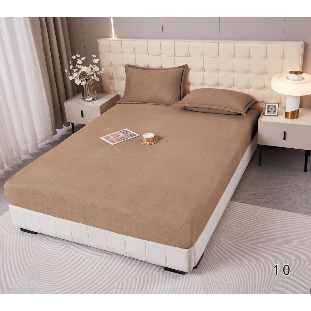 Husa de Pat Cocolino cu Elastic + 2 Fete de Perna pentru Pat Dublu, Maro Deschis - DNA283