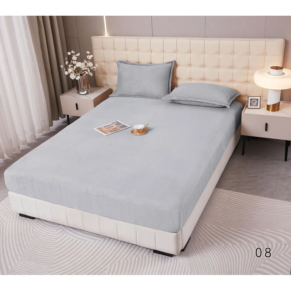 Husa Matlasata Tip Topper din Catifea 180x200cm, cu 2 Fete de Perna 50x70cm - Somn Odihnitor si Sustinere pentru Spate, Grej