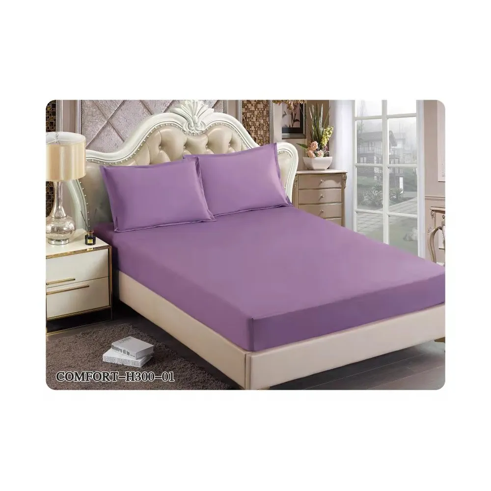 Husa de Pat Tercot cu Elastic + 2 Fete de Perna pentru Pat Dublu Mov - EAT201