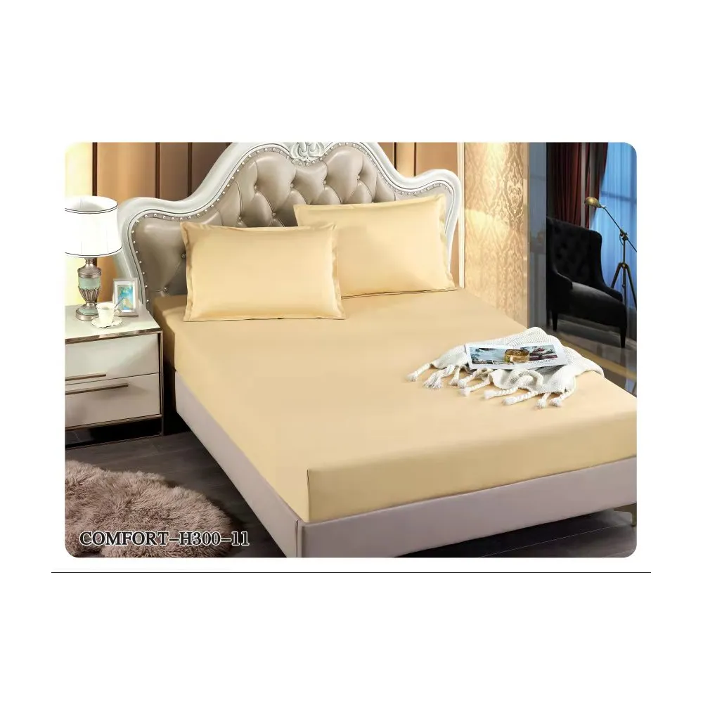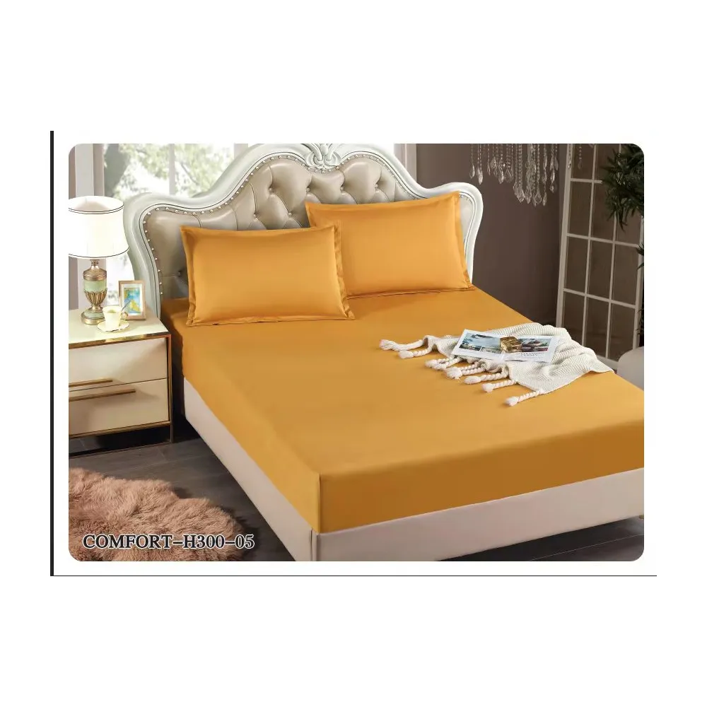 Husa de Pat Tercot cu Elastic + 2 Fete de Perna pentru Pat Dublu Galben Inchis - EAT203