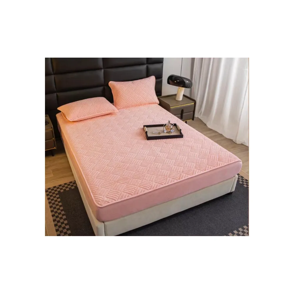 Husa pentru saltea tip topper cu elastic + 2 Fete de perna catifea, Roz Pudra 180x200cm - JOJ560