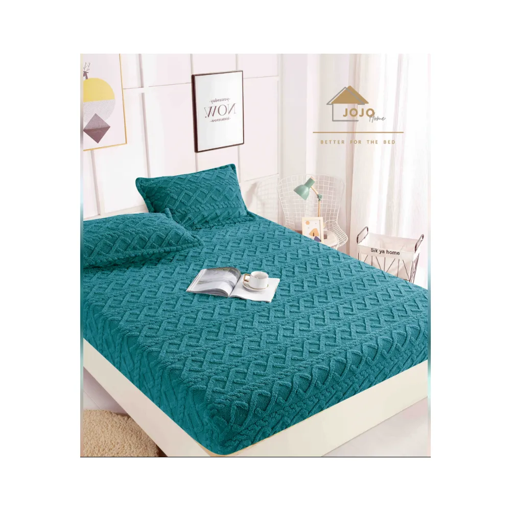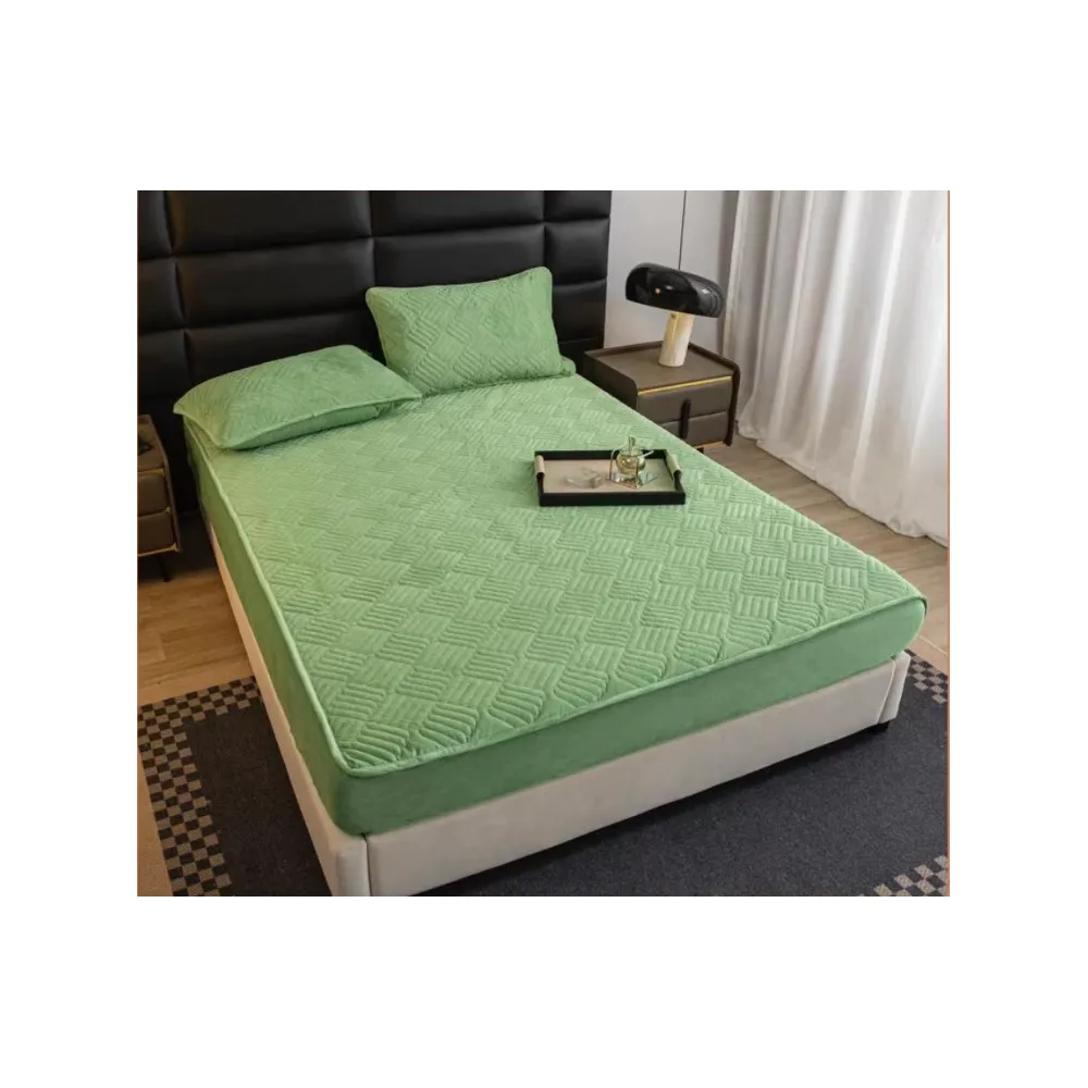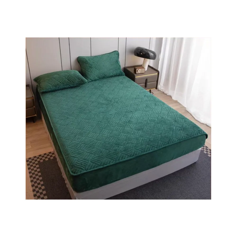 Husa pentru saltea tip topper cu elastic + 2 Fete de perna catifea, Verde 180x200cm - JO943