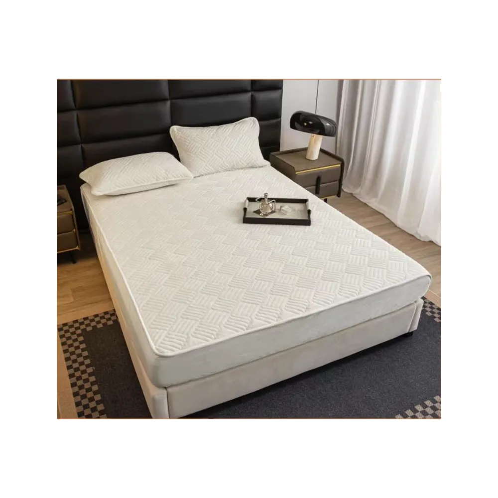 Husa pentru saltea tip topper cu elastic + 2 Fete de perna catifea, Alb 180x200cm - JOJ559