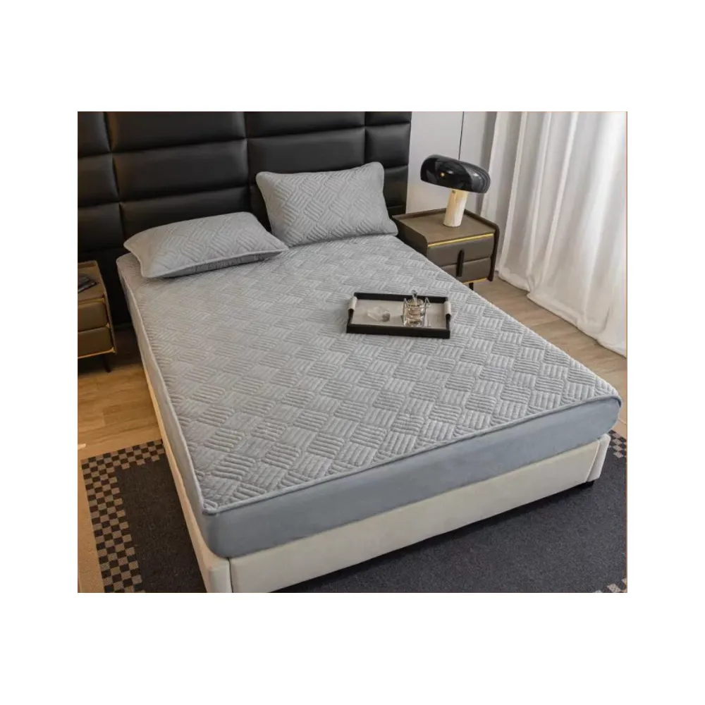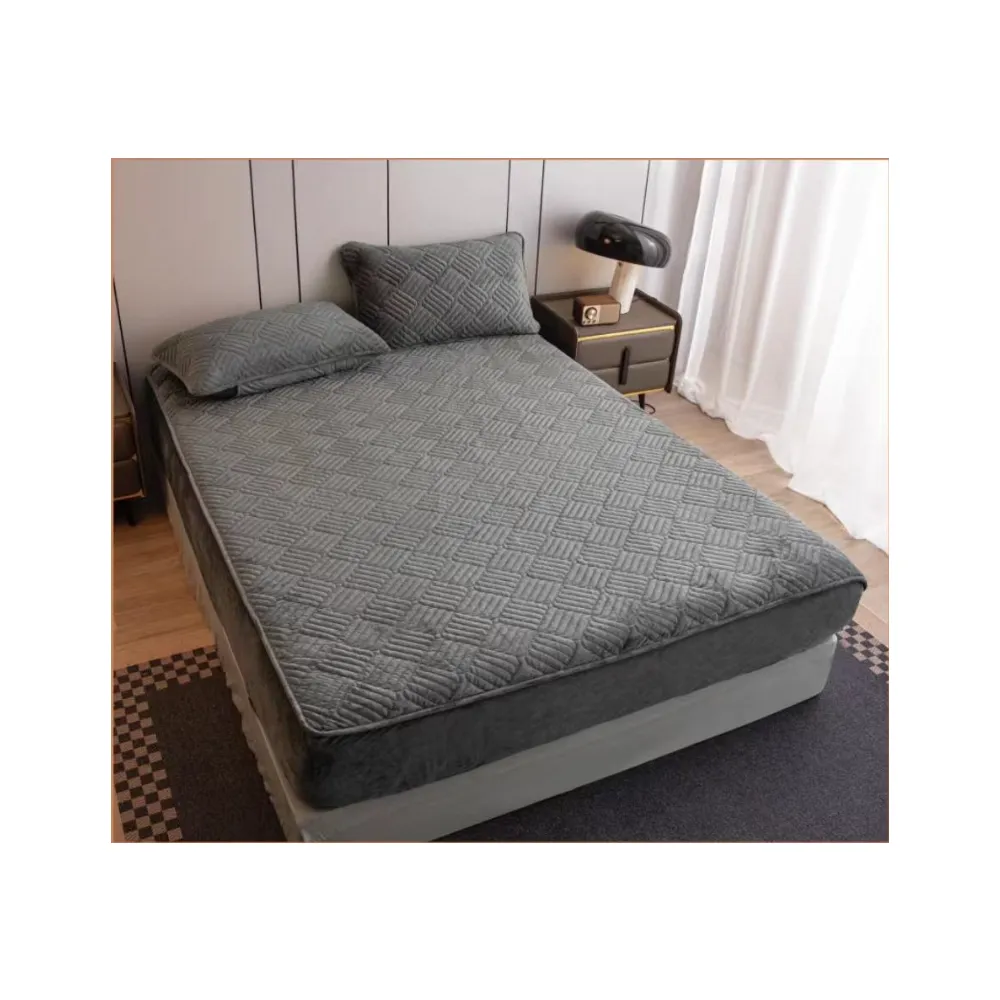 Husa pentru saltea tip topper cu elastic + 2 Fete de perna catifea, Gri Deschis 180x200cm - JO944