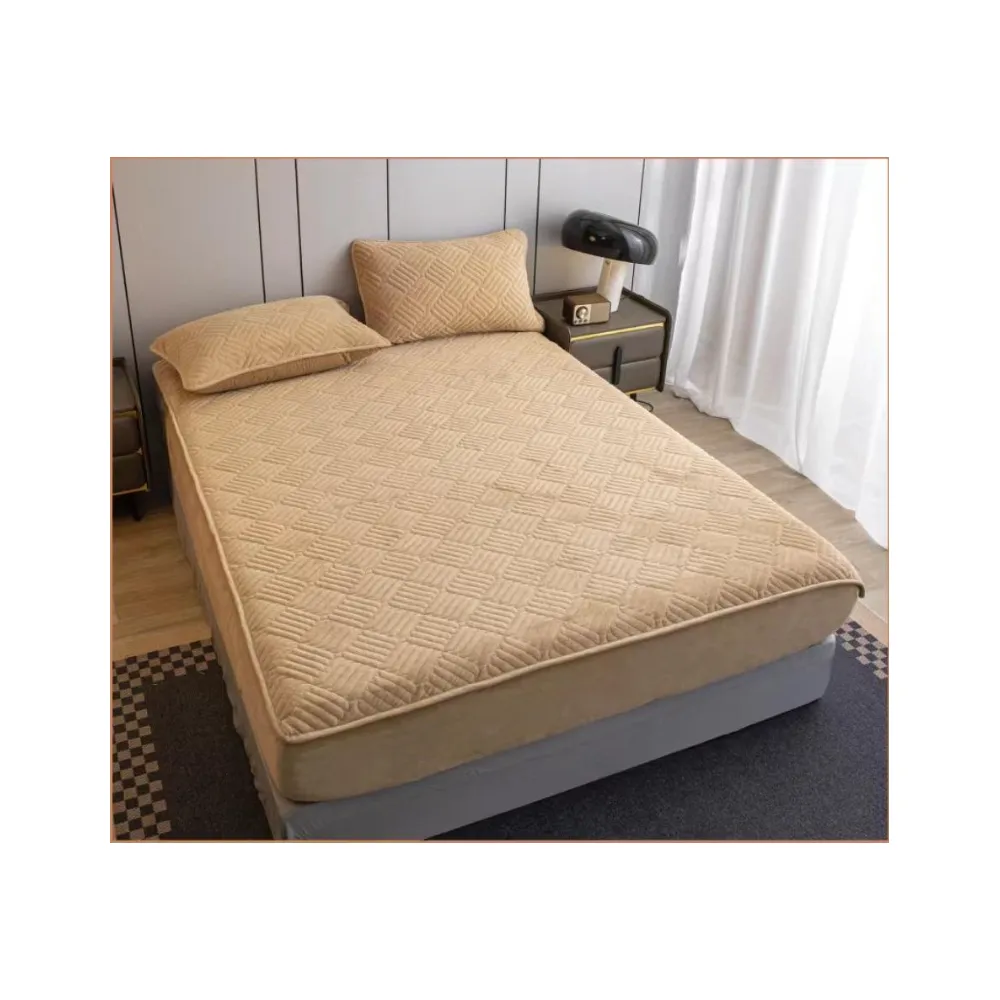 Husa pentru saltea tip topper cu elastic + 2 Fete de perna catifea, Unt 180x200cm - JO945