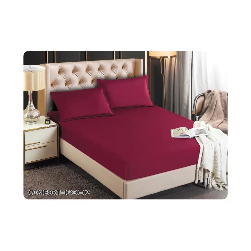 Husa de Pat Tercot cu Elastic + 2 Fete de Perna pentru Pat Dublu Bordo - EAT207