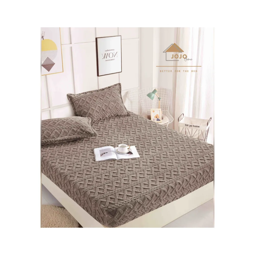 Husa De Pat Tricot Cu Elastic + 2 Fete De Perna Pentru Pat Dublu, Maro Deschis - JO969