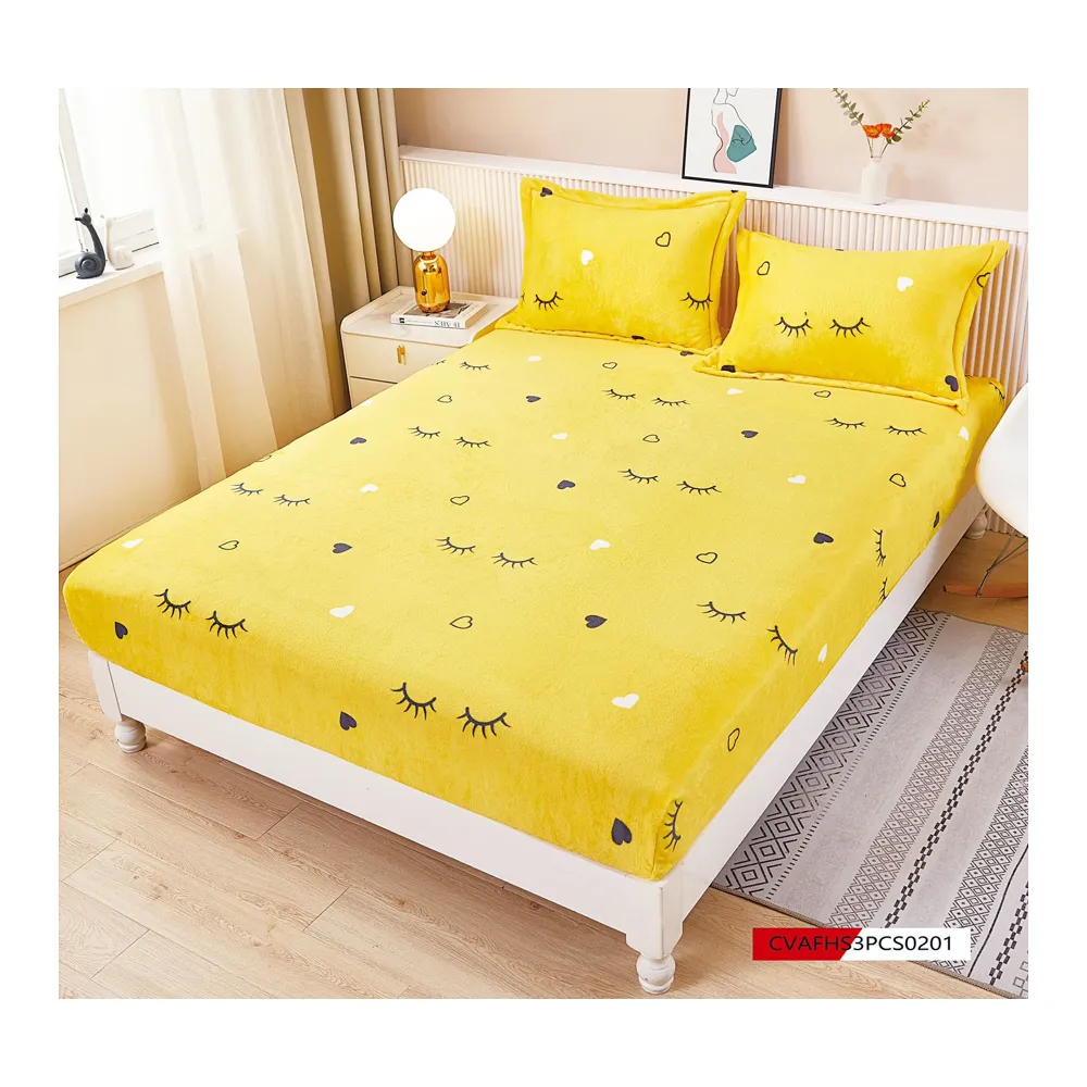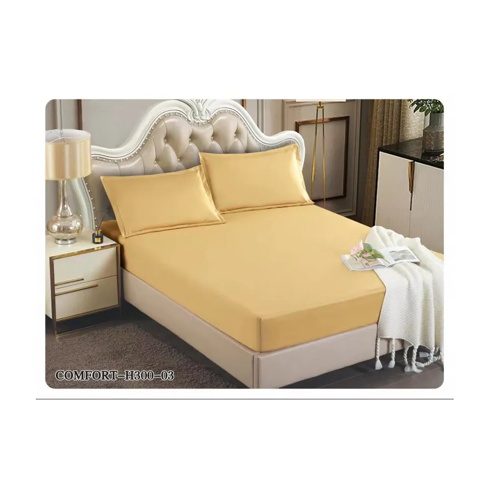 Husa de Pat Tercot cu Elastic + 2 Fete de Perna pentru Pat Dublu Galben Deschis - EAT206