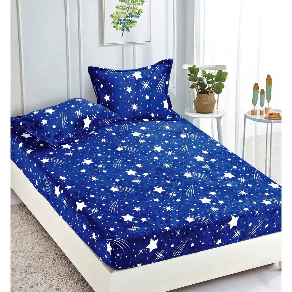 Husa de Pat Tercot cu Elastic + 2 Fete de Perna pentru Pat Dublu Albastru - EAT209