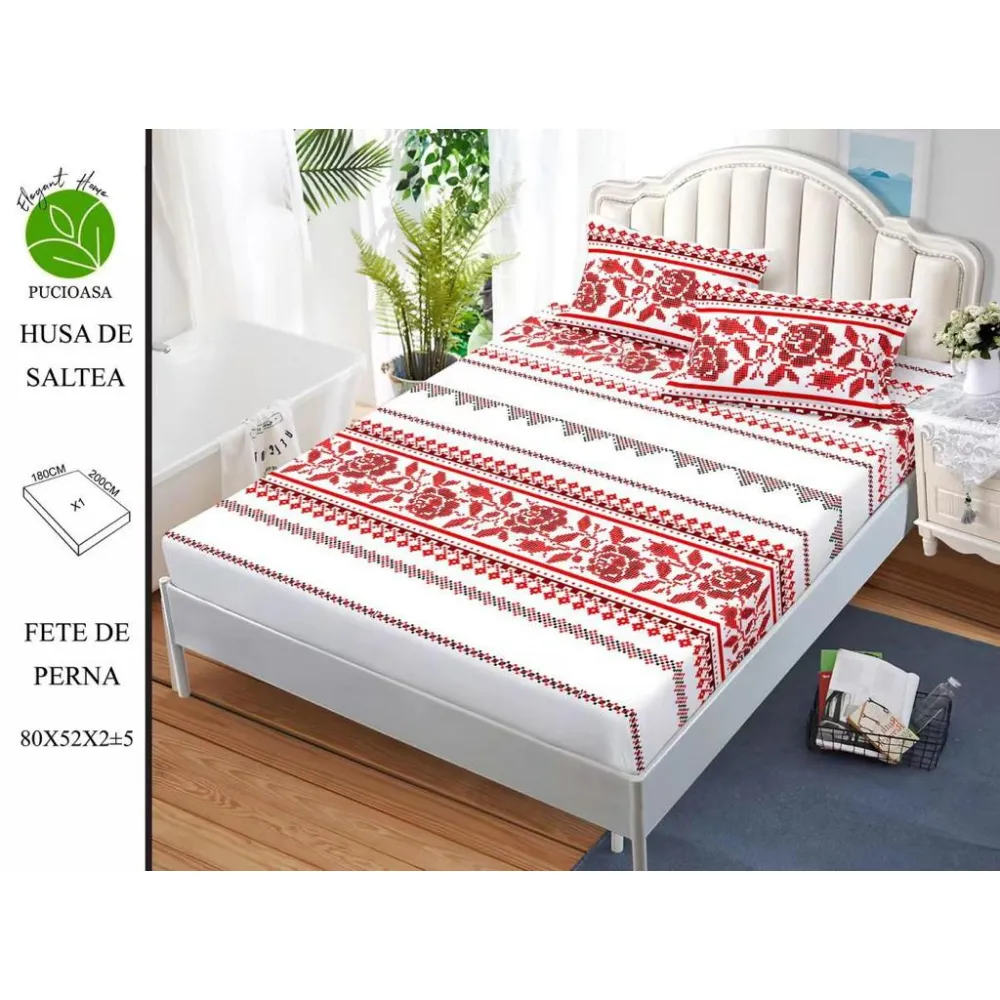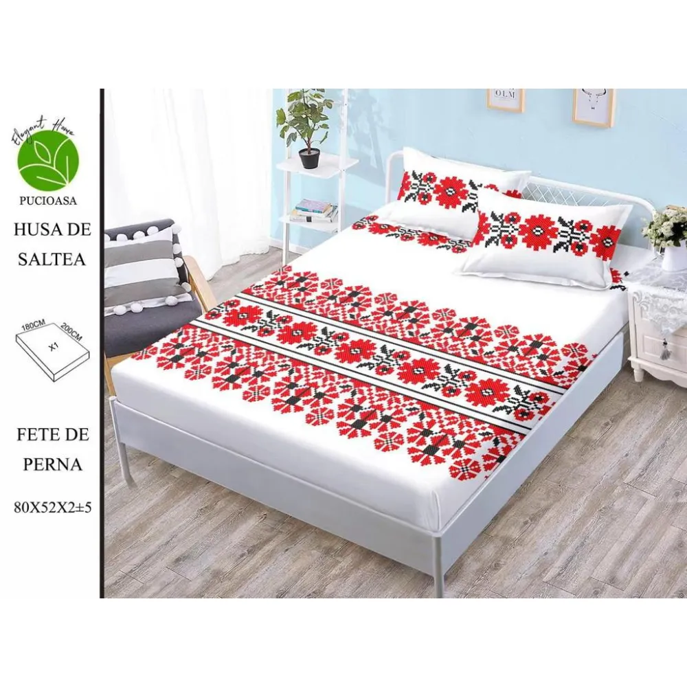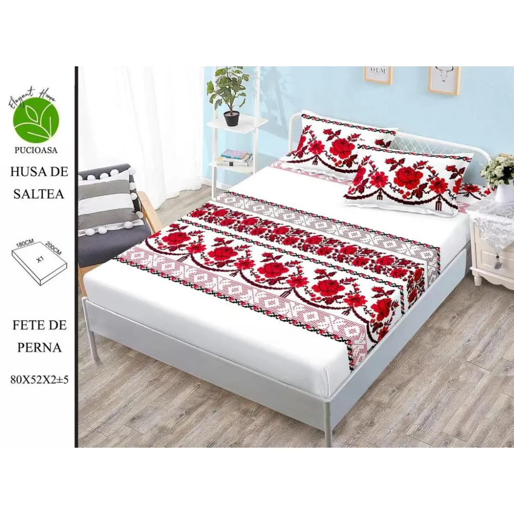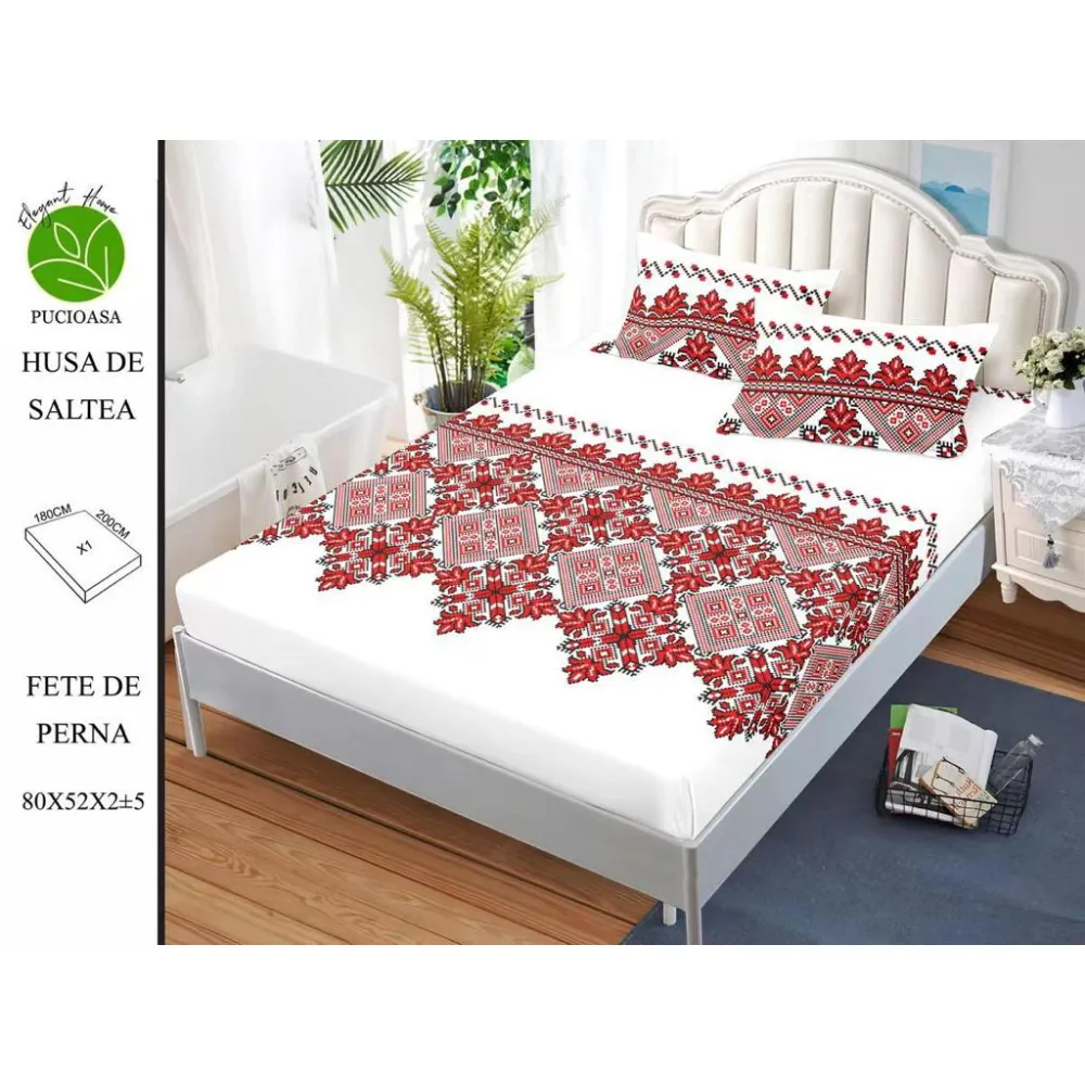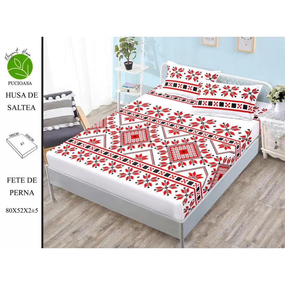 Husa De Pat Cu Elastic Model Traditional + 2 Fete De Perna Pentru Pat Dublu - SIPRG-231