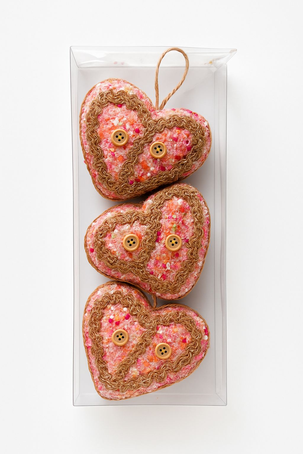 Decoratiune inimi textile cu nasturi, set 3 buc, roz, 25x9.5cm