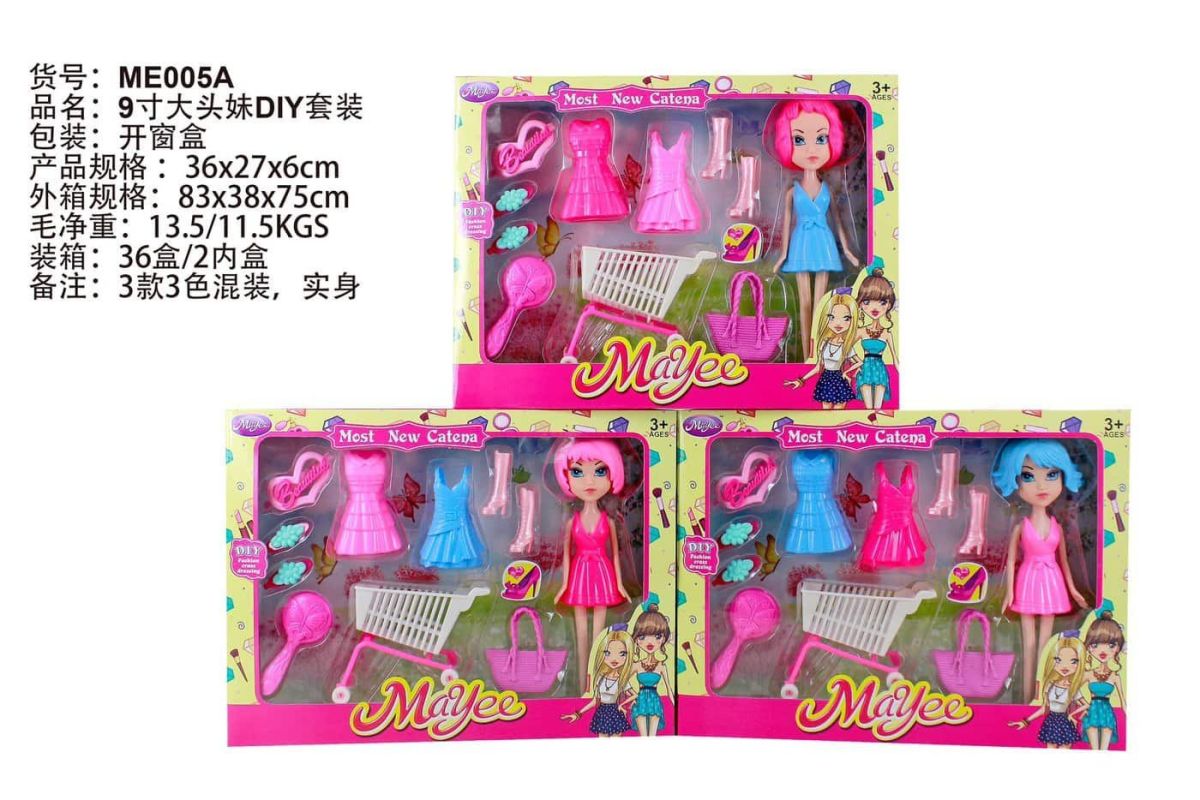 Set Papusa si Carucior pentru cumpărături, rochite de schimb si alte accesorii, Mayee, 36×27×6cm, multicolor, +3ani,
