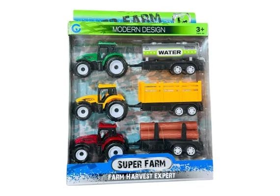 Set 3 tractoare Super Farm, modele combinate, multicolor, 24×21cm,